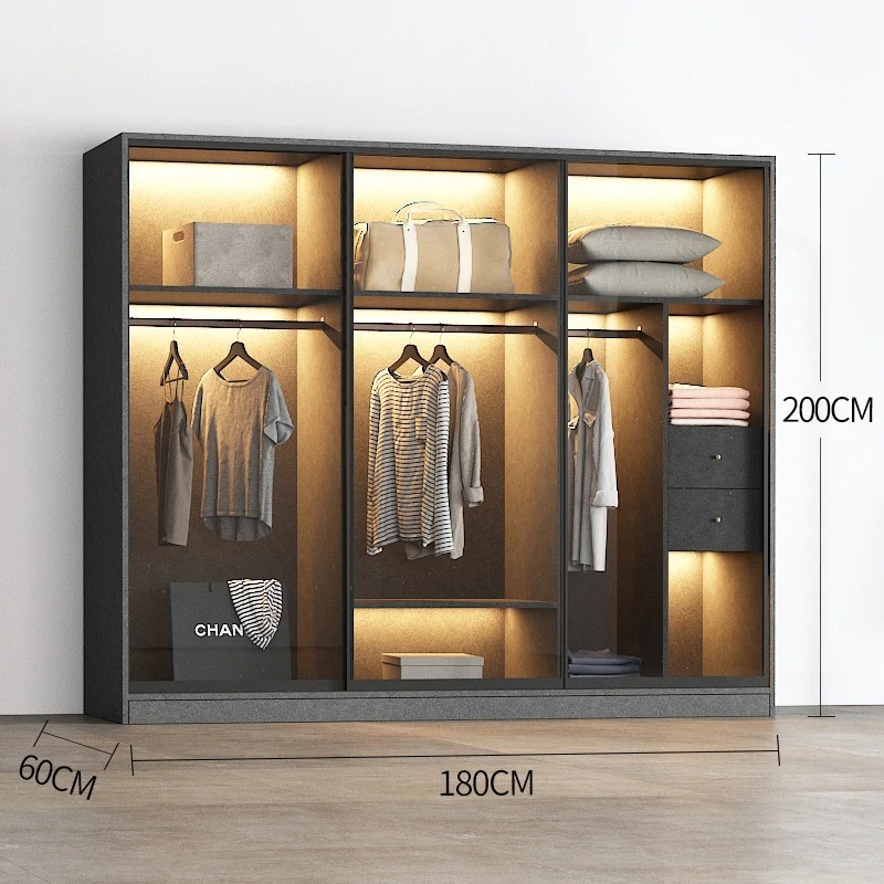 Ở thiết kế mẫu tủ sẽ toát lên sự quý phái, đẳng cấp nhờ kết hợp chung với hệ thống đèn điện chiếu sáng. Ánh đèn phản chiếu qua gương tạo được sự lung linh và giúp tôn lên mọi đường nét đẹp nhất của trang phục.