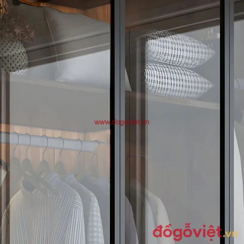 + Kính mờ: Giúp “giấu” đồ đạc bên trong tủ, đảm bảo tạo được sự bắt mắt, và giữ được sự riêng tư nhất định cho người dùng.