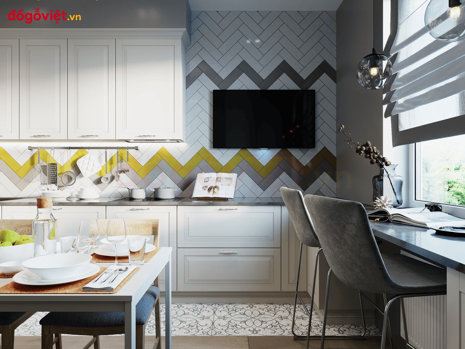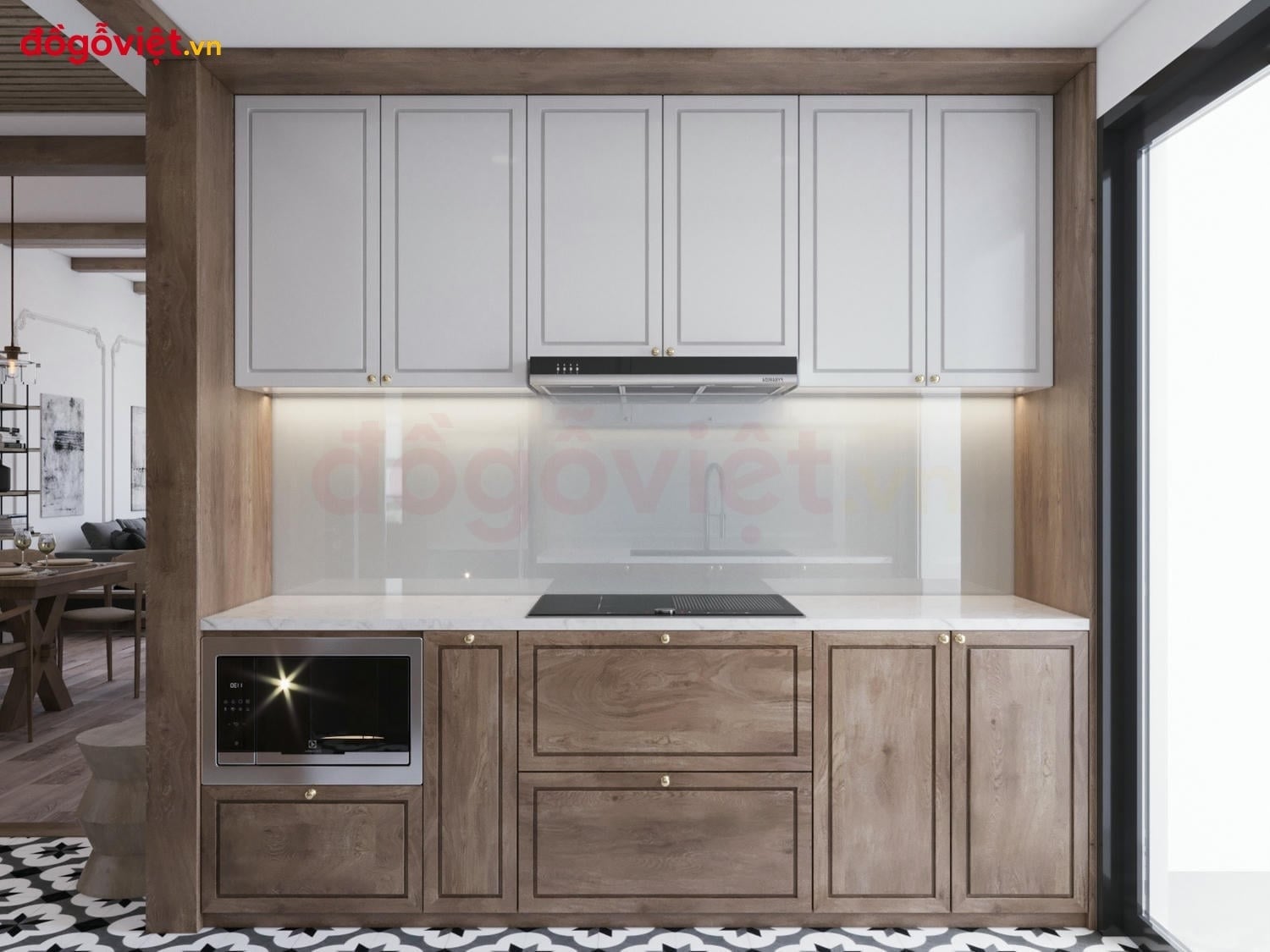Tủ bếp hiện đại đơn giản với đa dạng mẫu mã và kiểu dáng. Được làm từ chất liệu gỗ công nghiệp đa dạng về màu sắc, được phủ melamine hoặc acrylic có độ bền cao. Kênh Đồ gỗ Việt là đơn vị chuyên tư vấn thiết kế và thi công tủ bếp nói riêng và nội thất gia đình nói chung. Chúng tôi đã có nhiều năm kinh nghiệm. Đo đạc tư vấn và báo giá tận nơi, miễn phí bản vẽ 3D cùng nhiều chính sách hậu mãi hấp dẫn. Liên hệ ngay hotline 0977 118 799 để được tư vấn và thiết kế 3D miễn phí!