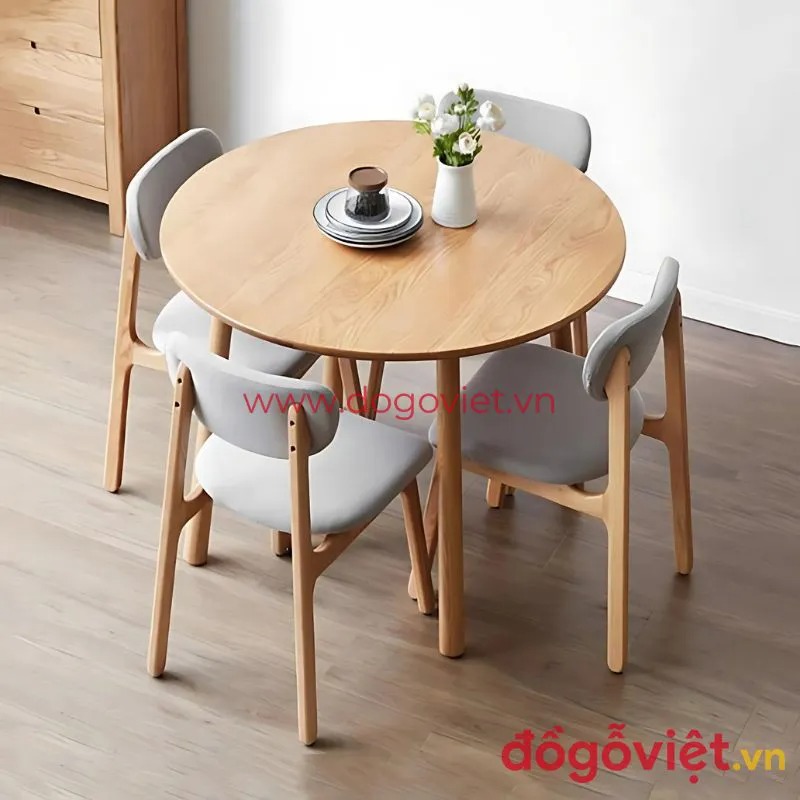 - Bộ bàn ăn có đường kính nhỏ (90-100cm): Thích hợp để dùng được cho những gia đình nhỏ từ 2-4 người, hoặc trong diện tích căn hộ chung cư hạn chế. Kích thước mẫu bàn gọn gàng và không chiếm nhiều diện tích, phù hợp để bố trí trong góc bếp hoặc phòng ăn nhỏ.
