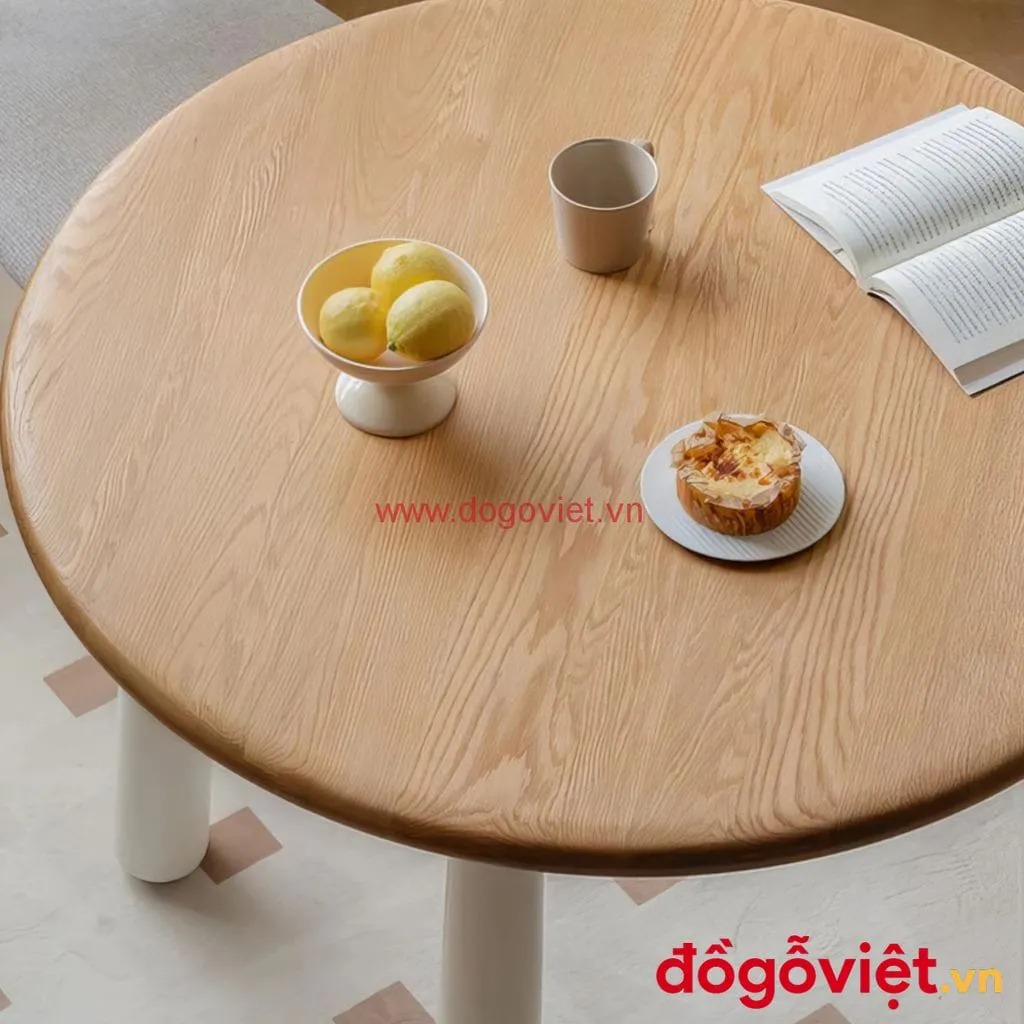 - Gỗ tự nhiên: Nhờ sở hữu vẻ đẹp tự nhiên, độ bền và khả năng chịu lực tốt. Bàn ăn tròn gỗ tự nhiên mang lại không gian cảm giác ấm cúng và sang trọng. Tuy nhiên, để duy trì vẻ ngoài và chất lượng. Đòi hỏi cần định kỳ bảo dưỡng cho chất liệu này.
