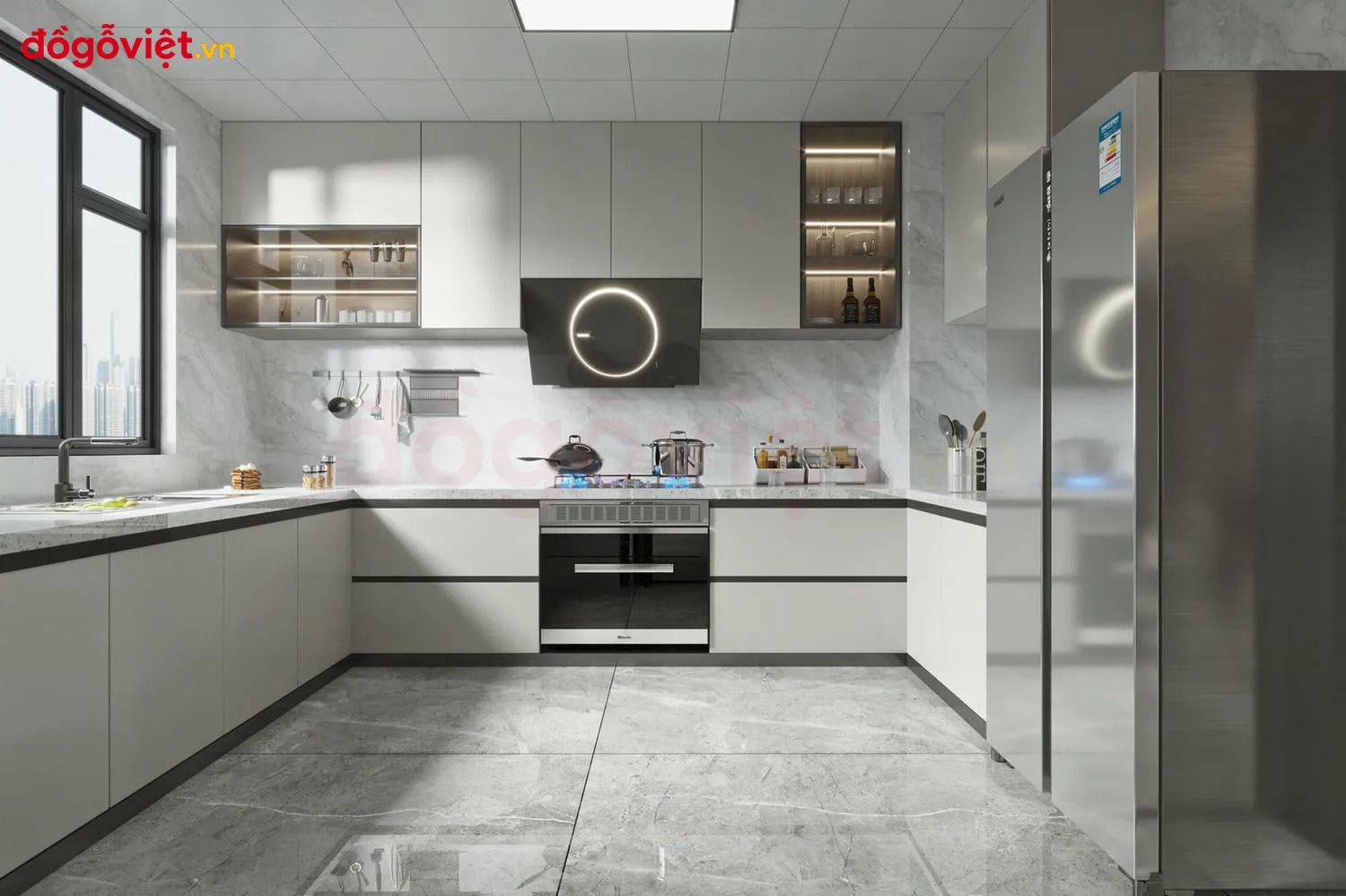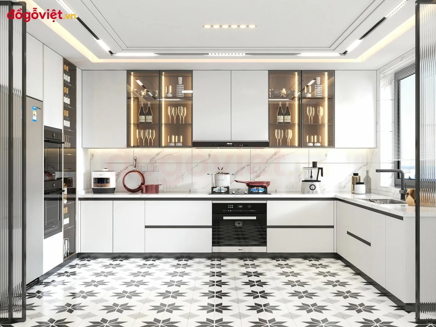 Kênh Đồ gỗ Việt sở hữu hơn 100+ mẫu tủ bếp gỗ công nghiệp xu hướng nhất hiện nay. Nhờ có ưu thế xưởng sản xuất trực tiếp có quy mô rộng rãi trên 1000m2. Kênh Đồ gỗ Việt đã đầu tư hệ thống máy móc tân tiến, hiện đại đạt chuẩn Châu Âu nhằm phục vụ trong sản xuất nhiều dạng tủ bếp từ đơn giản đến cầu kỳ.