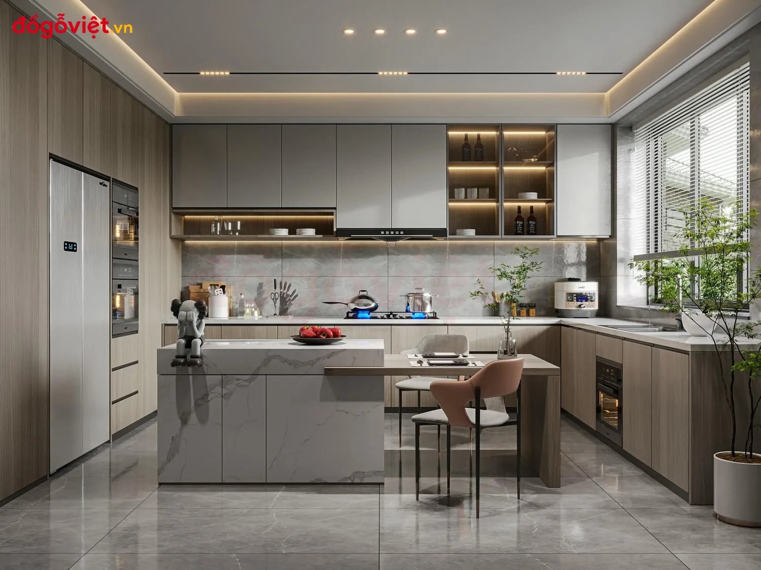 Hãy liên hệ ngay đến kênh Đồ gỗ Việt qua số HOTLINE: 0977 118 799 để được tư vấn chi tiết và trải nghiệm không gian bếp khác biệt nhé.