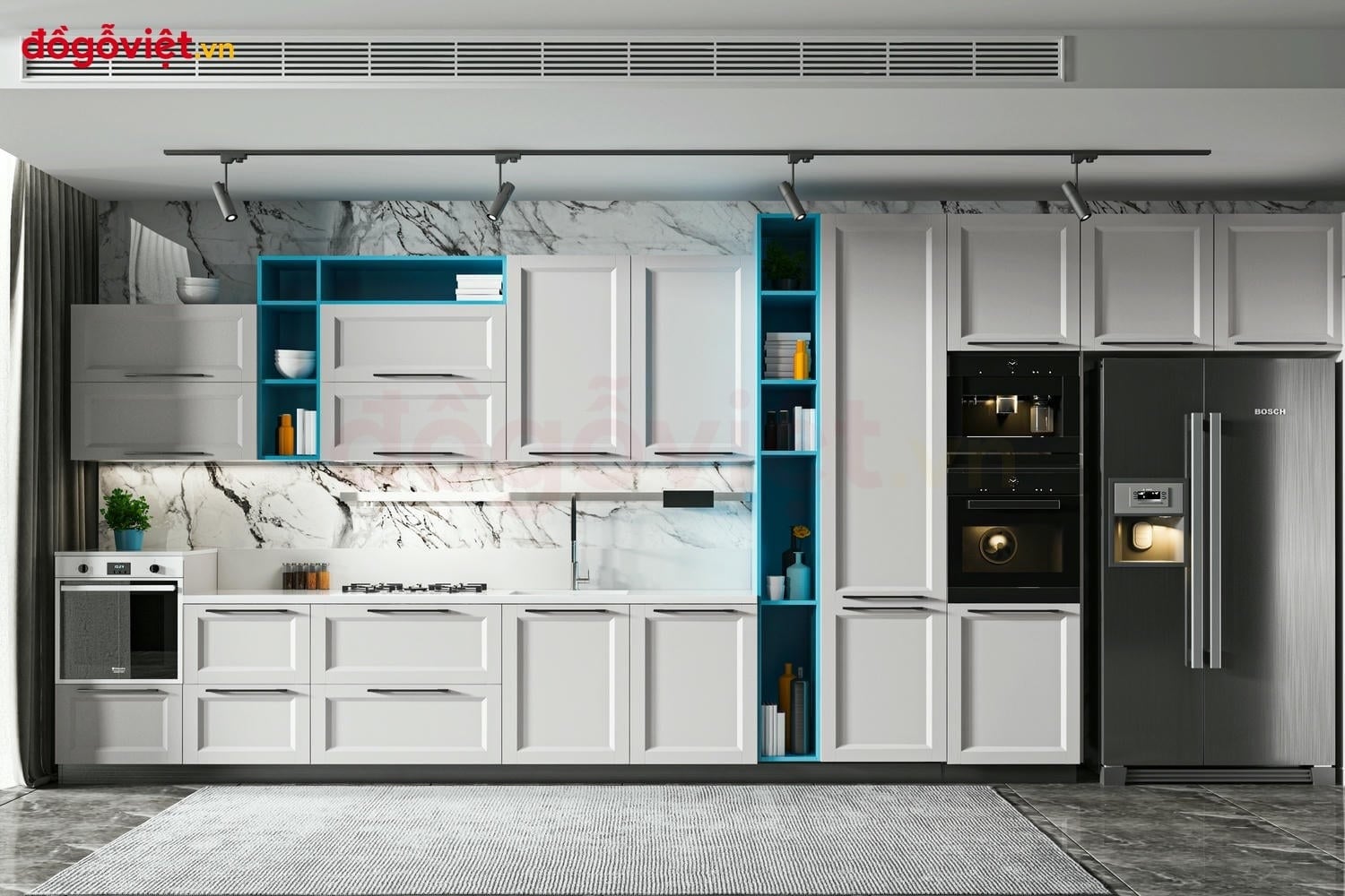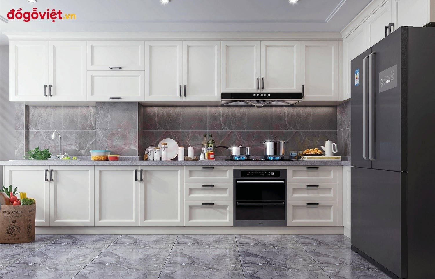 Lưu ý: Giá tủ bếp mang tính tham khảo, chưa bao gồm thiết bị bếp (chậu, bếp, máy hút mùi) và phụ kiện đặc biệt như tay nâng Hafele, bản lề Blum, ray giảm chấn,....
