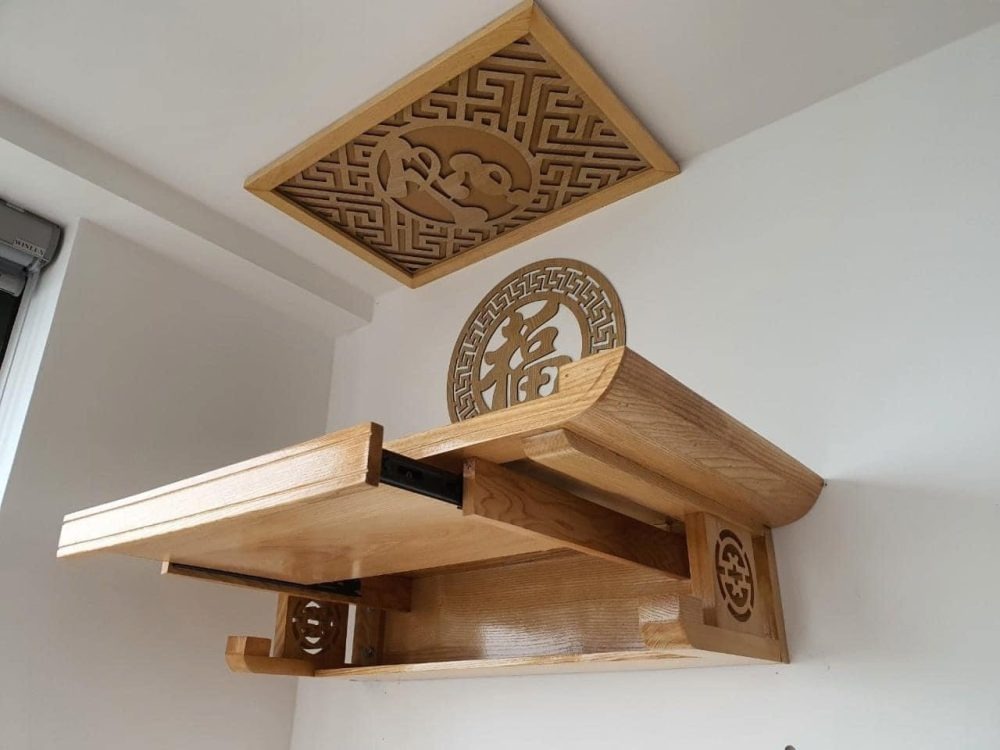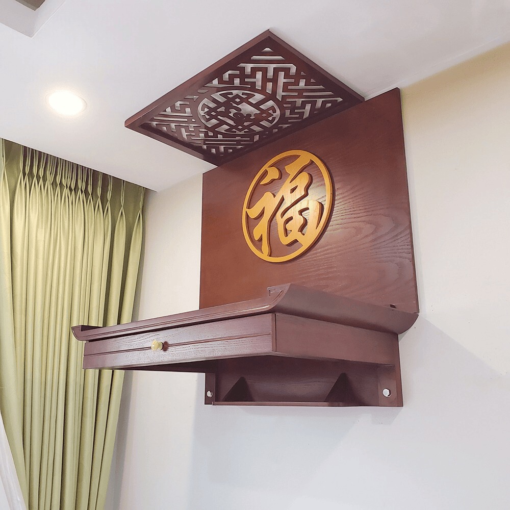 Có thể đặt làm bàn thờ treo tường theo kích thước yêu cầu. Để phù hợp với vị trí và phong thủy riêng trong từng gia đình.
