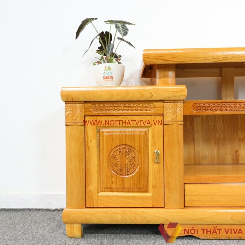 Thu hút với đường vân gỗ tự nhiên và màu gỗ trầm ấm, đường nét chạm khắc tinh xảo, tit mỉ. Tạo nên chiếc kệ tivi thông minh hoàn hảo, giúp tăng thêm vẻ đẹp sang trọng trong không gian.