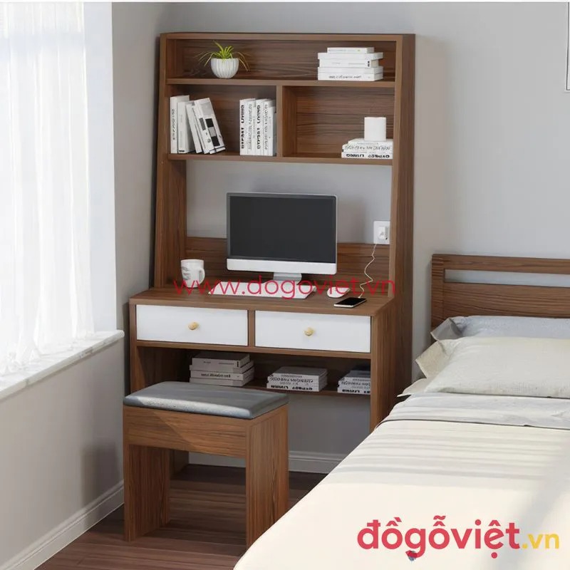 - Tiết kiệm không gian: Tích hợp giá sách nằm ngay trên phía bàn học, giúp không gian căn phòng ngăn nắp, gọn gàng hơn. Như vậy, rõ ràng sẽ tiết kiệm được khoảng không để giá sách và giúp không gian rộng rãi, thông thoáng hơn. Đặc biệt, là lựa chọn phù hợp để dùng trong những phòng có diện tích nhỏ như chung cư hay phòng trẻ em.