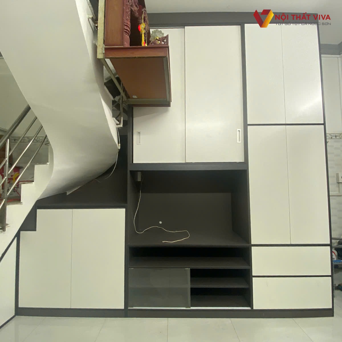 Có thể dùng kệ tivi gầm cầu thang để làm nơi đặt tivi, hoặc để tích hợp giá sách, tủ trang trí hay kệ rượu... Thiết kế kệ tivi gầm cầu thang linh hoạt, linh hoạt để đặt theo kích thước và nhu cầu sử dụng thực tế.