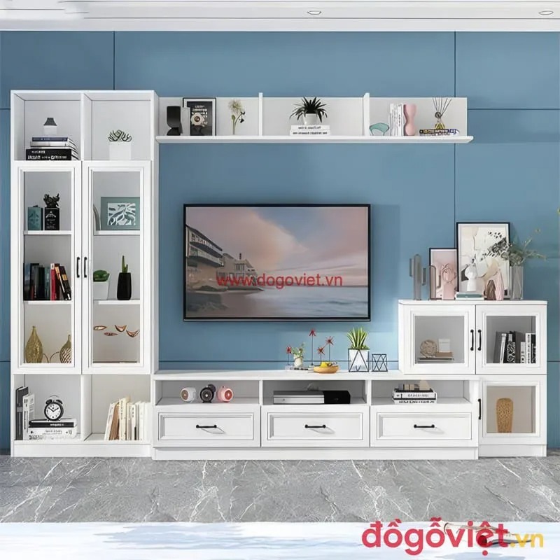 Tủ kệ tivi phòng khách thông minh vừa tối ưu không gian. Vừa mang đến ngôi nhà sự tiện ích và tăng giá trị thẩm mỹ. Liên hệ ngay đến Kênh Đồ gỗ Việt qua Hotline/Zalo: 0977 118 799 – 0933 118 799 để nhận tư vấn chi tiết, báo giá ưu đãi và sở hữu mẫu kệ tivi đẹp trong phòng khách.