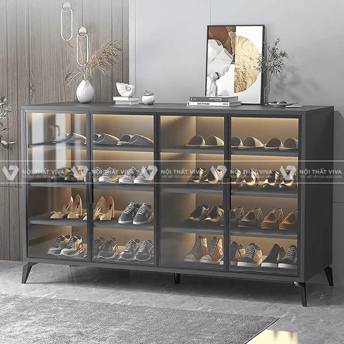 Phù hợp trong những không gian hiện đại, sang trọng. Tủ giày cánh kính cửa lùa là lựa chọn không thể bỏ qua.
