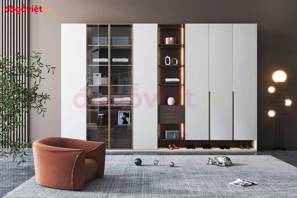 Thường tủ giày kết hợp tủ quần áo sẽ dùng đặt trong phòng thay đồ, phòng ngủ với diện tích lớn.
