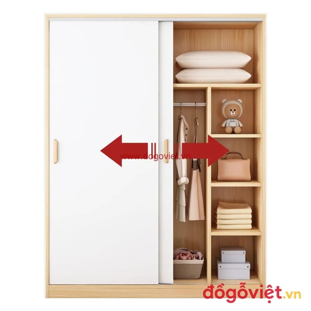 Khách hàng có thể đặt tủ quần áo cánh lùa 2 cánh theo yêu cầu riêng tại Kênh Đồ gỗ Việt. Đảm bảo không gian phòng ngủ tối ưu từng mét vuông.