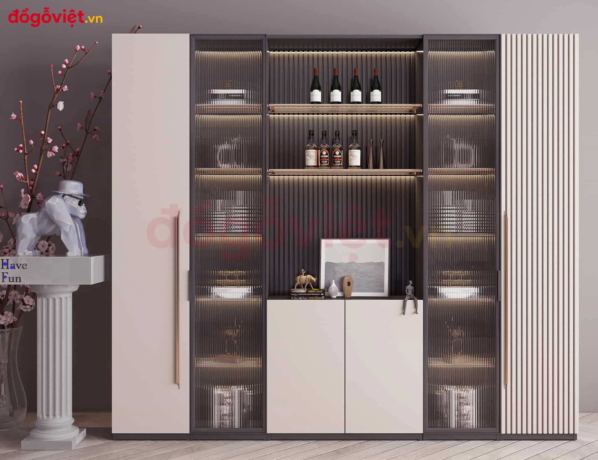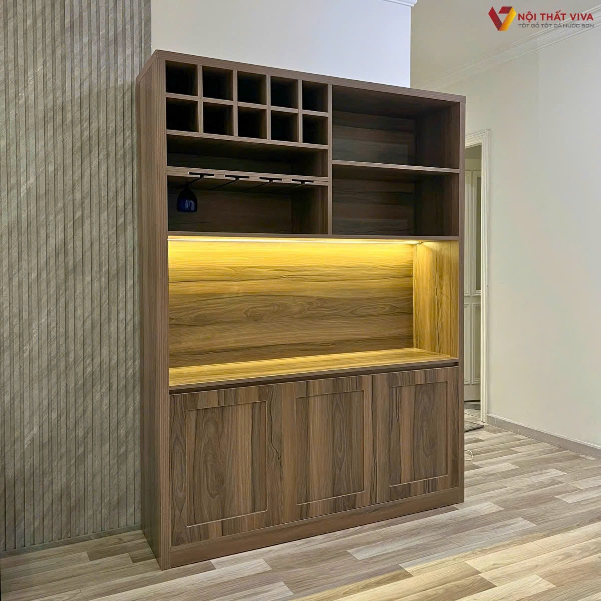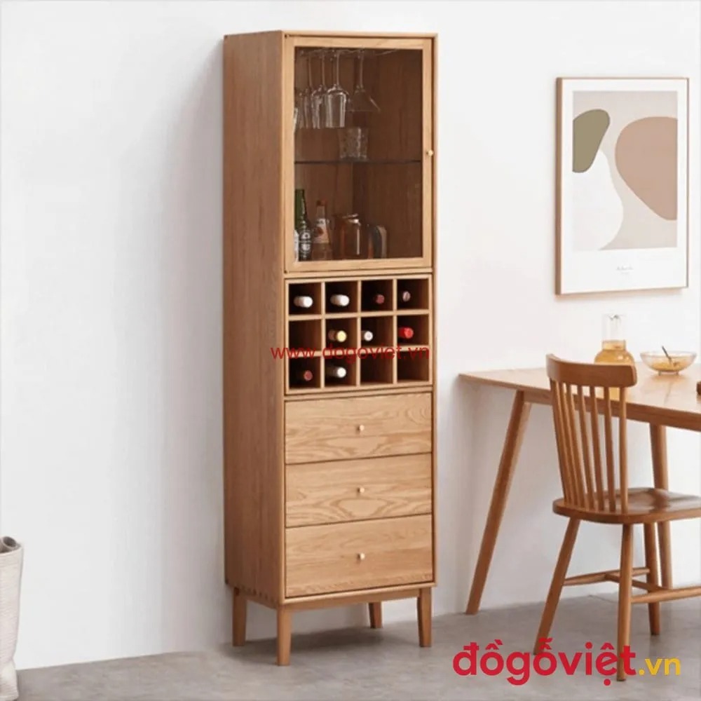 Đặc biệt, với lợi thế xưởng sản xuất trực tiếp, Kênh Đồ Gỗ Việt nhận thiết kế và gia công mẫu tủ rượu đẹp theo yêu cầu. Giúp gia chủ dễ dàng sở hữu mẫu tủ vừa vặn không gian và đúng gu thẩm mỹ.