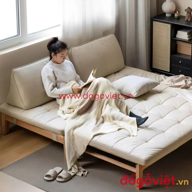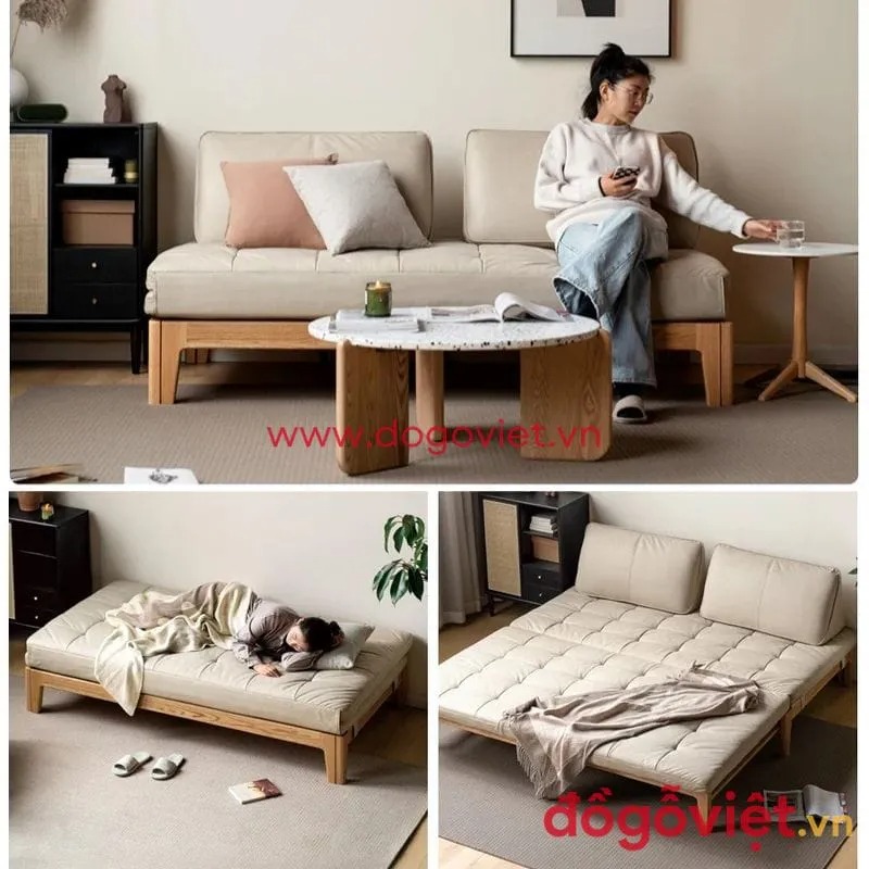 Sofa giường gỗ là kiểu dáng nội thất đa năng, kết hợp chức năng giường ngủ và ghế sofa.