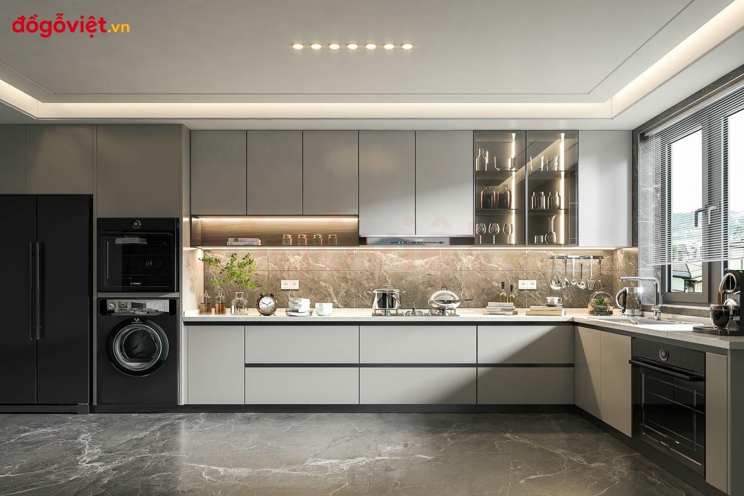 - Tấm gỗ Acrylic dài và có lợi thế khi thiết kế tủ bếp dáng cao, kịch trần.
