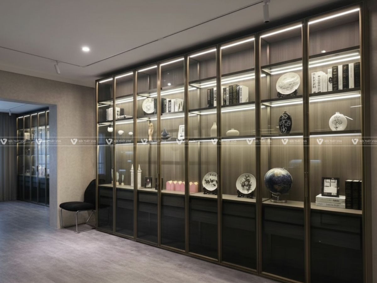 3.5. Tủ kính trưng rượu kết hợp kệ trang trí