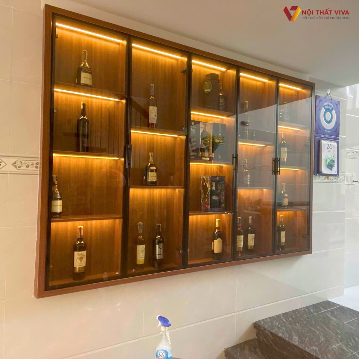 Kết hợp đèn LED với ánh sáng ấm áp, lung linh. Mẫu tủ kính trưng rượu cao cấp này sẽ tạo được hiệu ứng ánh sáng đẹp. Điều này khiến tủ rượu cánh kính là điểm nhấn nổi bật hơn cho không gian.