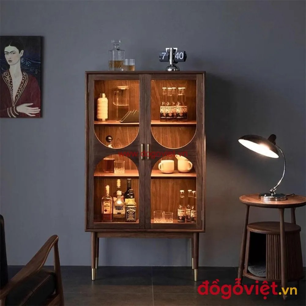 4.3. Tủ rượu cánh kính khung gỗ tự nhiên
