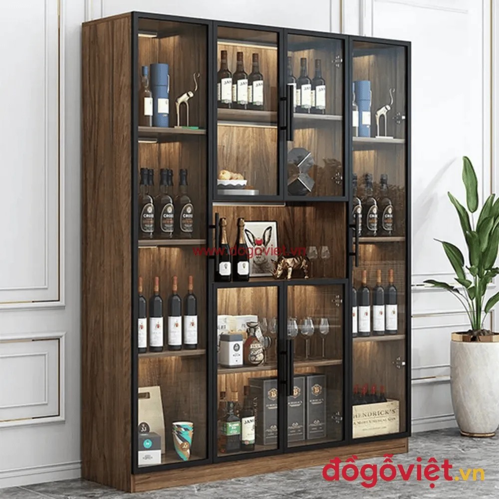 Tủ rượu cánh kính khung gỗ công nghiệp