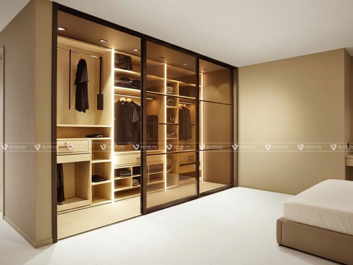 - Lựa chọn trang phục thuận tiện, dễ dàng quan sát, đặc biệt tủ quần áo kính có đèn phù hợp với những ai yêu thích không gian ngăn nắp.