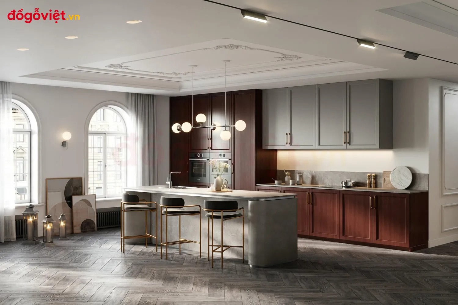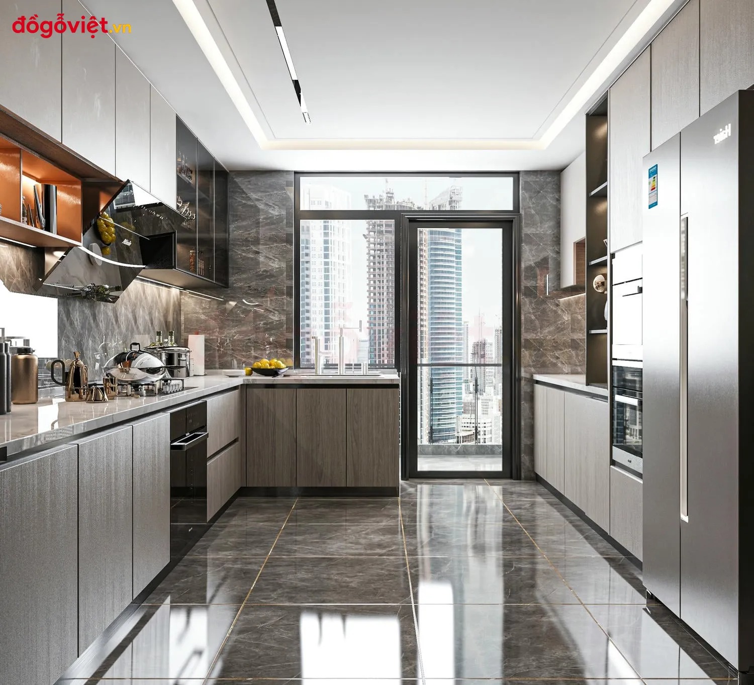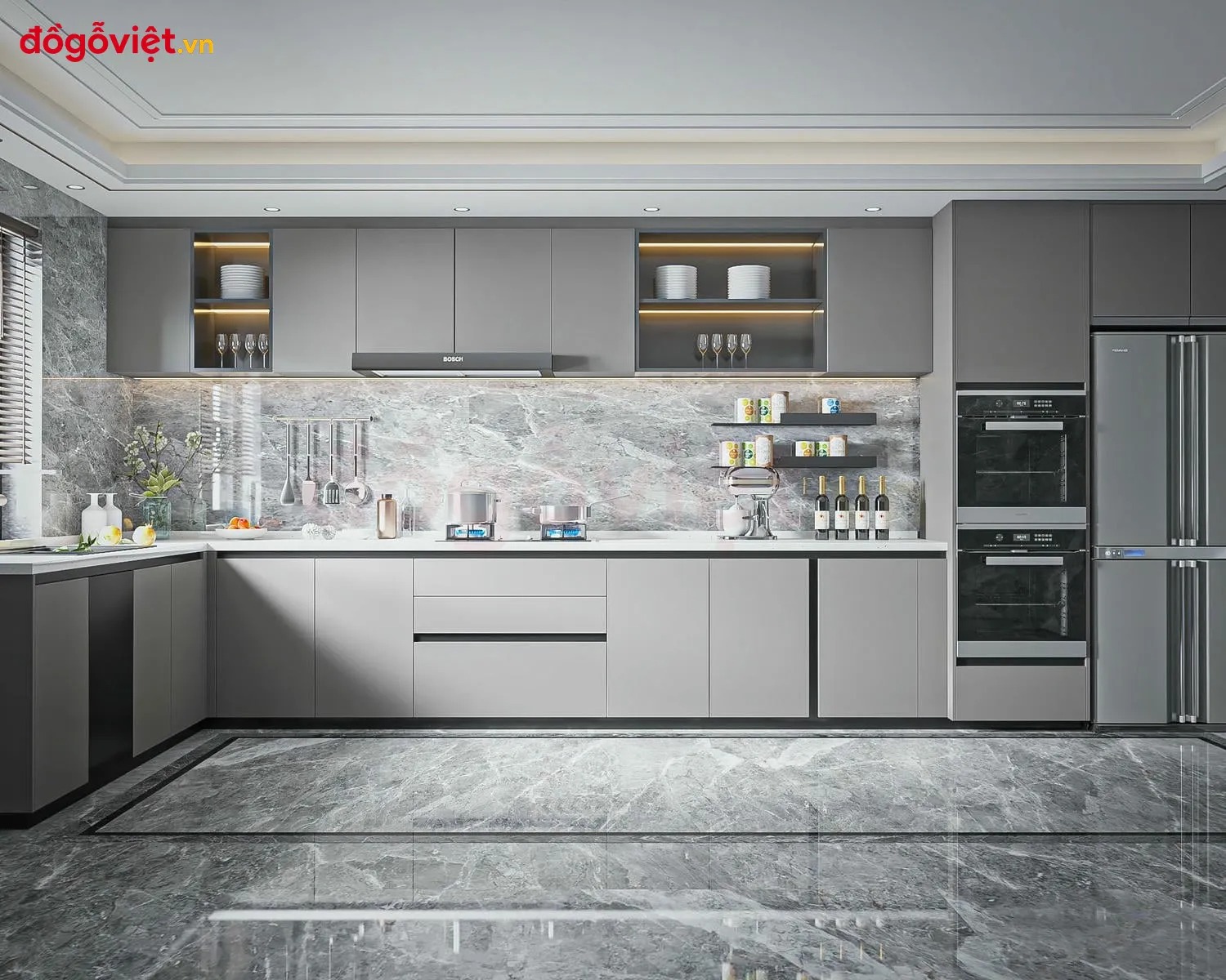 2.1. Tủ bếp màu xám gỗ công nghiệp