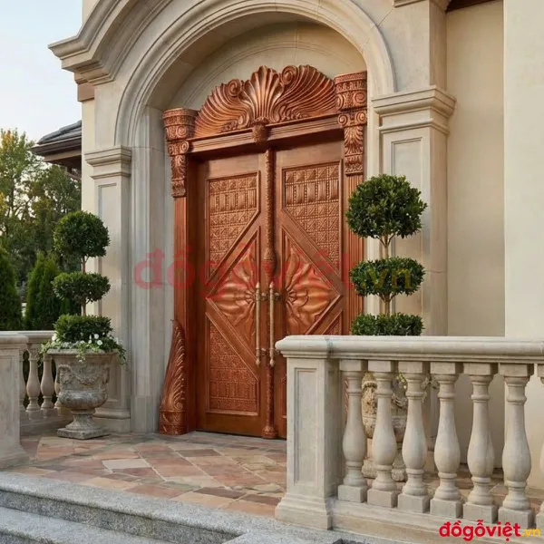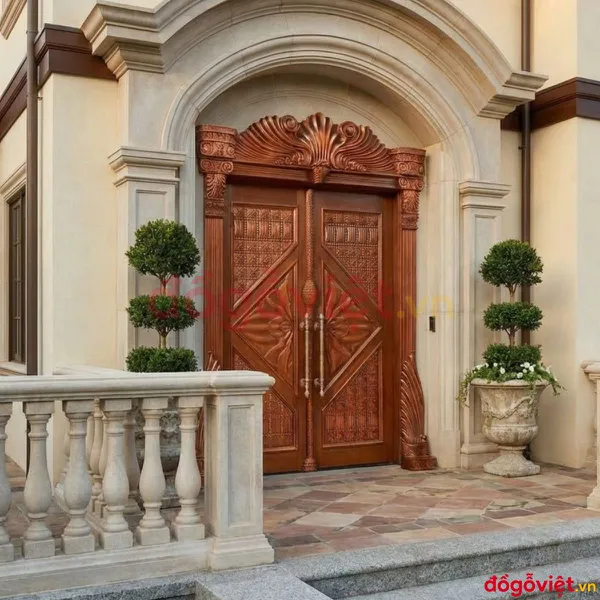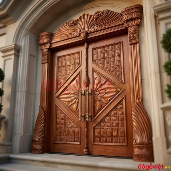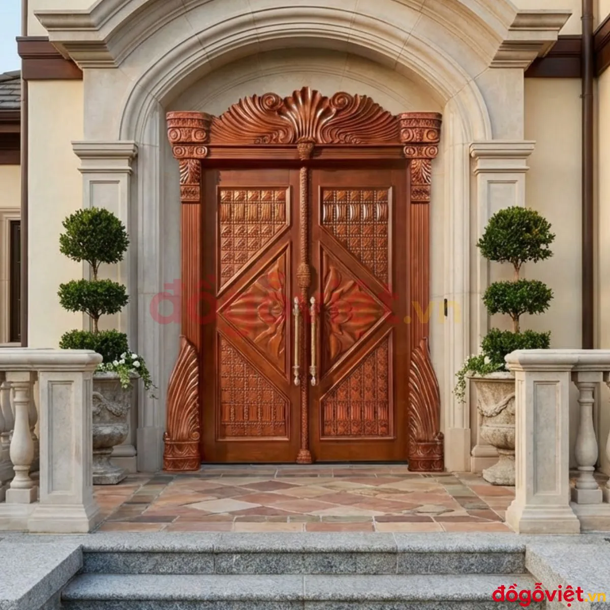 Bộ Cửa Gỗ 2 Cánh Gỗ Căm Xe Cao Cấp Thiết Kế Tinh Xảo Giá Tốt