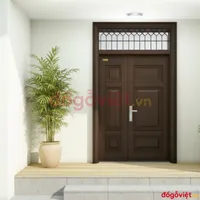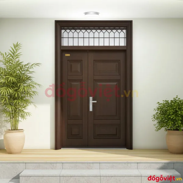 Cửa 2 Cánh Gỗ Sồi Tự Nhiên Sơn PU Màu Óc Chó Đẹp Tinh Tế