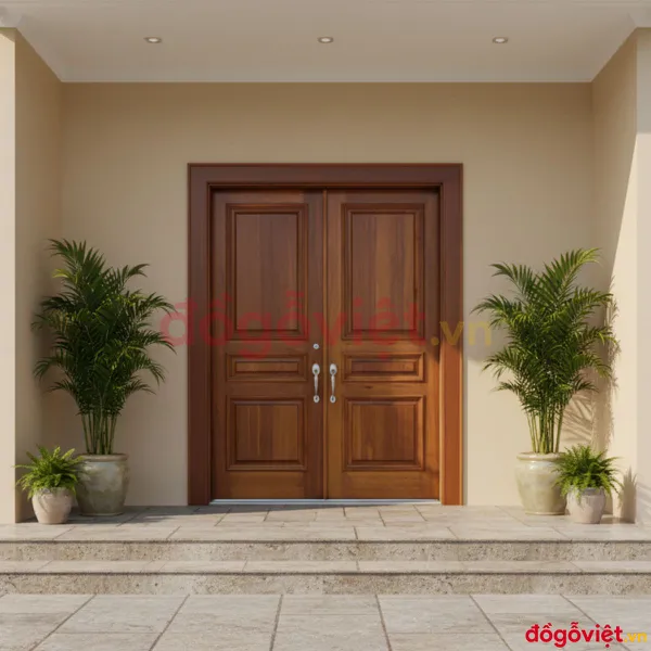 Mẫu Cửa Gỗ Tự Nhiên 2 Cánh Đẹp Đơn Giản Kết Cấu Bền Bỉ Chắc Chắn