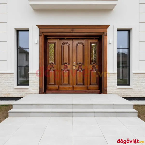Cửa Gỗ 4 Cánh Tân Cổ Điển Đẹp Tinh Tế Chất Lượng Vượt Trội