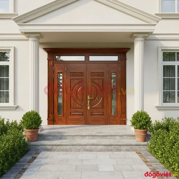 Mẫu Cửa Chính 4 Cánh Đẹp Vân Gỗ Rõ Nét Chất Lượng Bền Bỉ