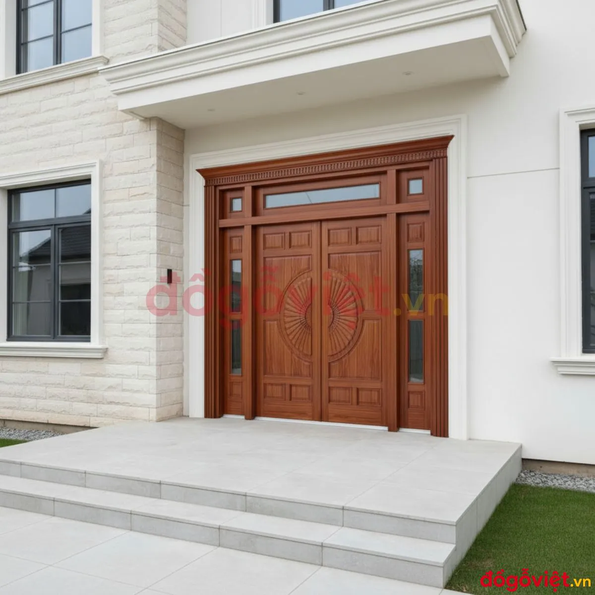 Mẫu Cửa Gỗ 4 Cánh Đẹp Sang Trọng Chất Liệu Gỗ Tự Nhiên Chắc Chắn