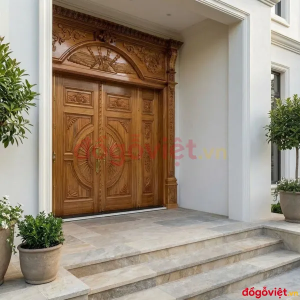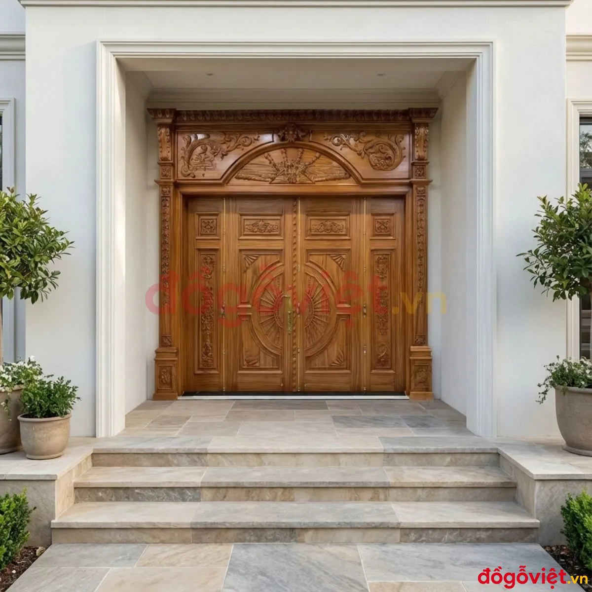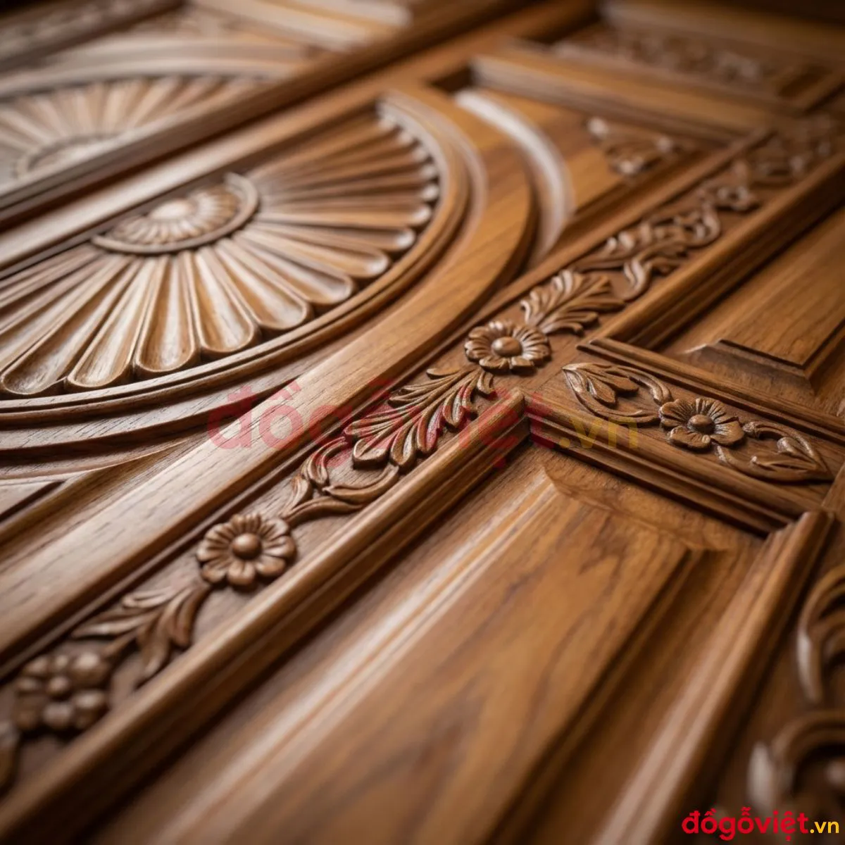 Mẫu Cửa Gỗ Đẹp 4 Cánh Chạm Khắc Hoa Văn Tinh Xảo Giá Tốt