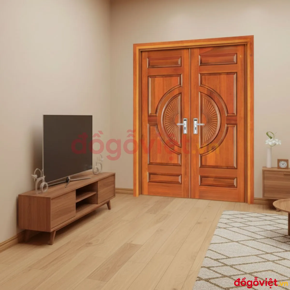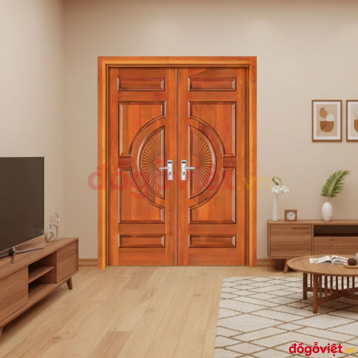 Cửa Gỗ Gõ Đỏ Cao Cấp Thiết Kế Sang Trọng Giá Hợp Lý