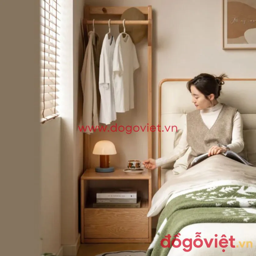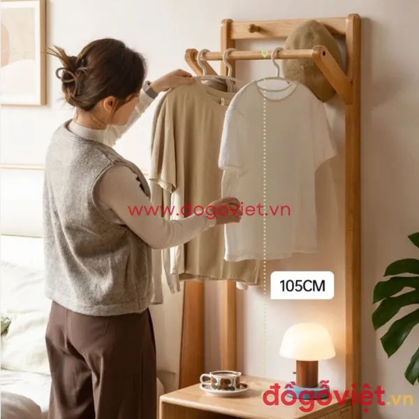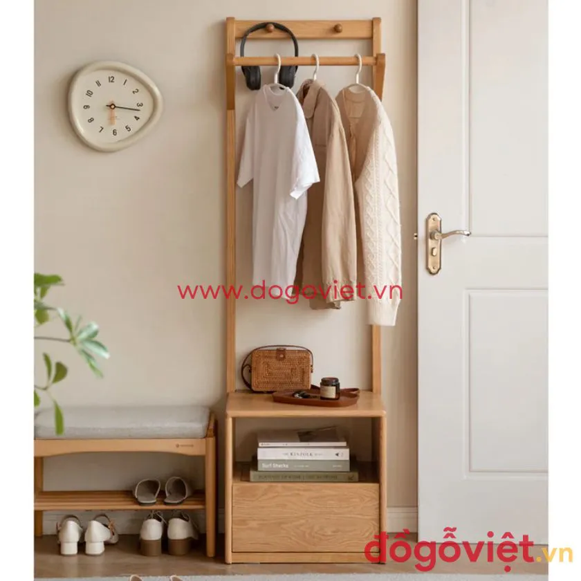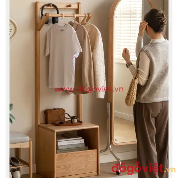 Giá Móc Gỗ Treo Quần Áo Tích Hợp Ngăn Đựng Đồ Tiện Lợi Hiện Đại