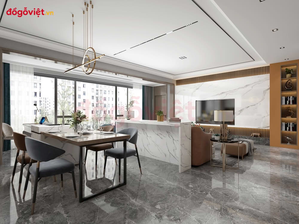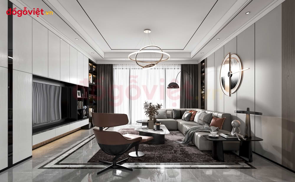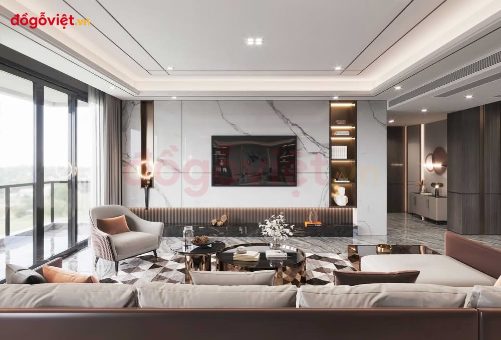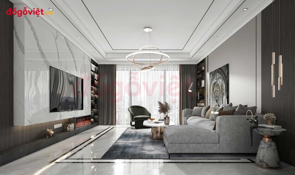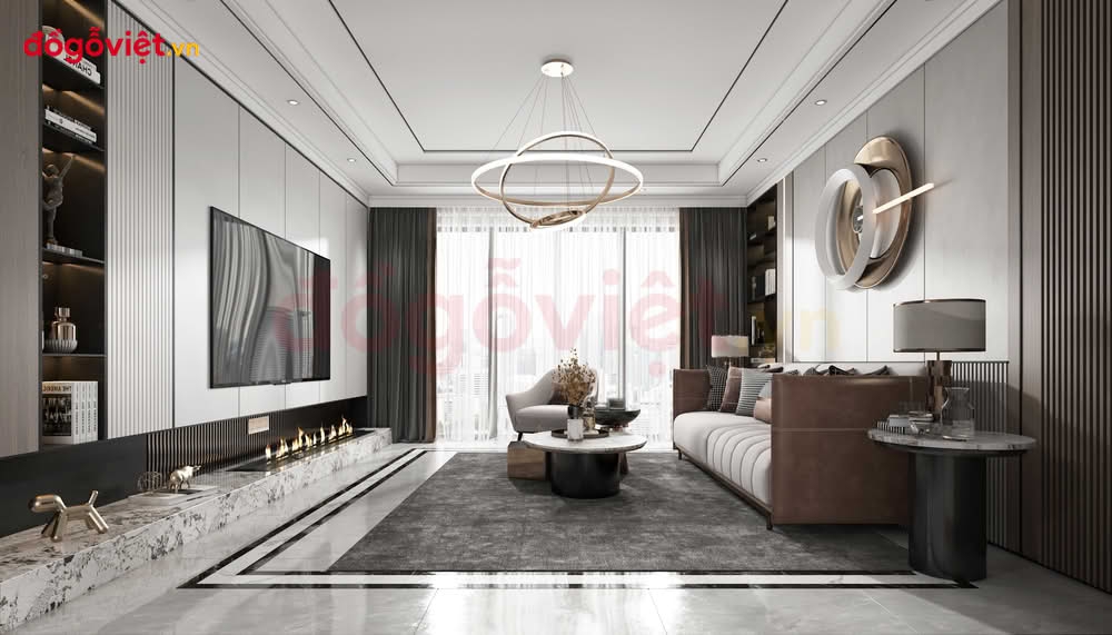 Vách Tivi Phòng Khách Chung Cư Hiện Đại Phù Hợp Không Gian Nhỏ