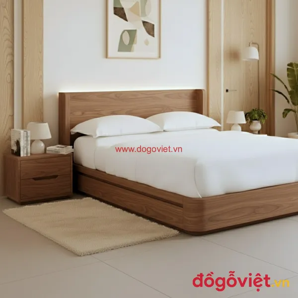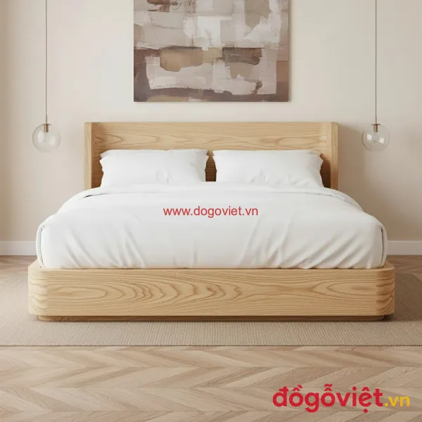 Giường Ngủ Bo Cong Gỗ Sồi Thiết Kế Cao Cấp Hiện Đại