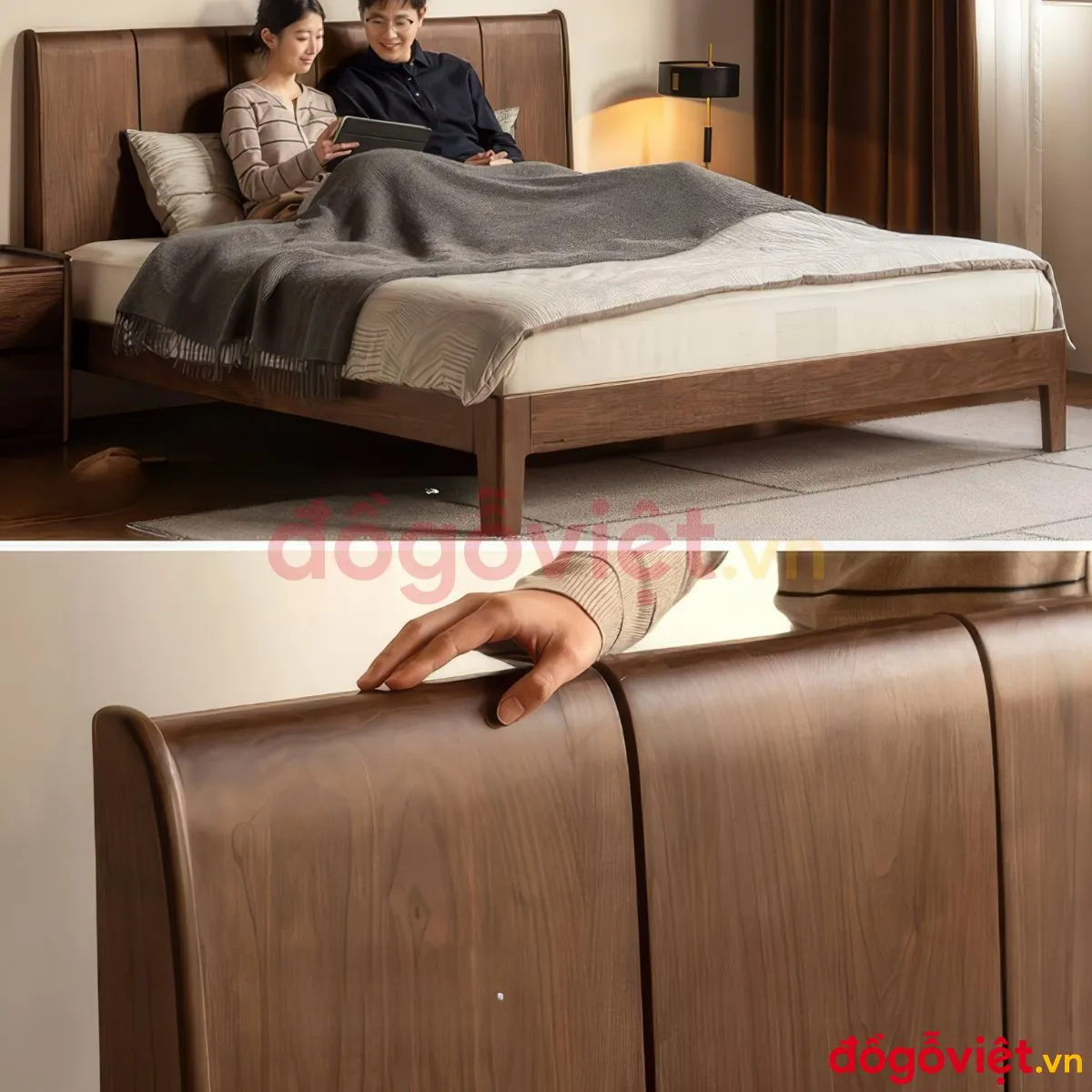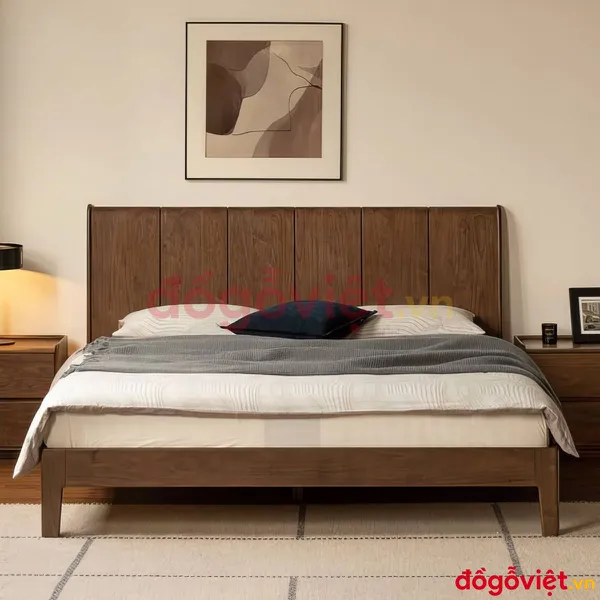 Mẫu Giường Ngủ Gỗ Đẹp Màu Óc Chó Sang Trọng Giá Tốt