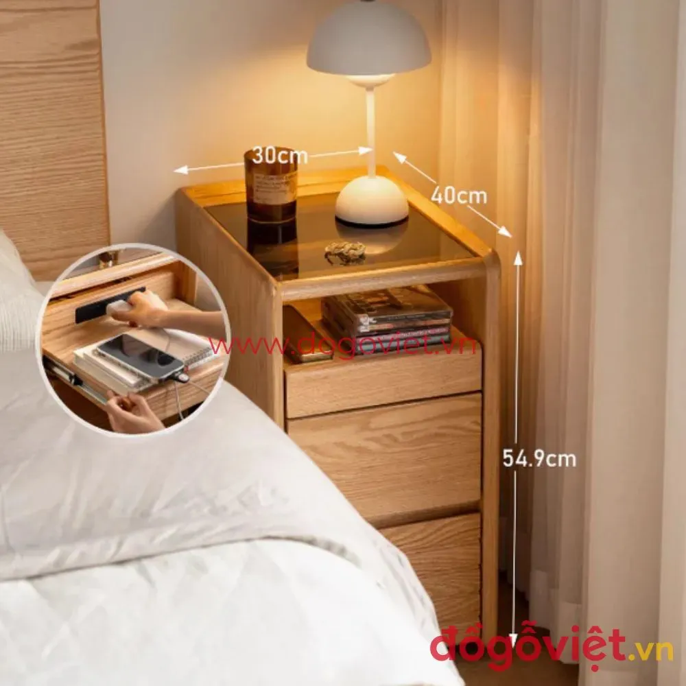Tủ Gỗ Nhỏ Để Đầu Giường Thiết Kế 3 Ngăn Kéo Tối Ưu