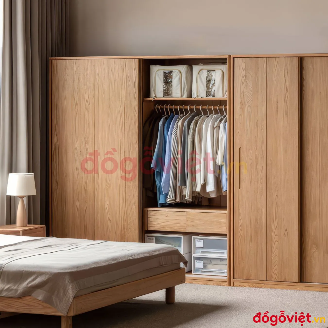 Tủ Gỗ Tự Nhiên Cánh Lùa Hiện Đại Thiết Kế Nhiều Ngăn Tiện Lợi